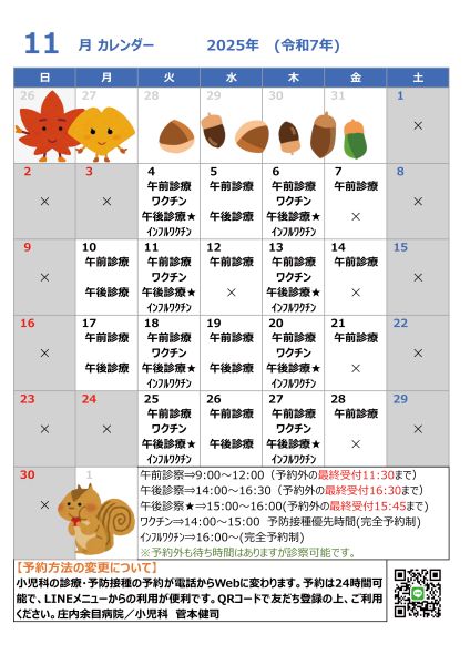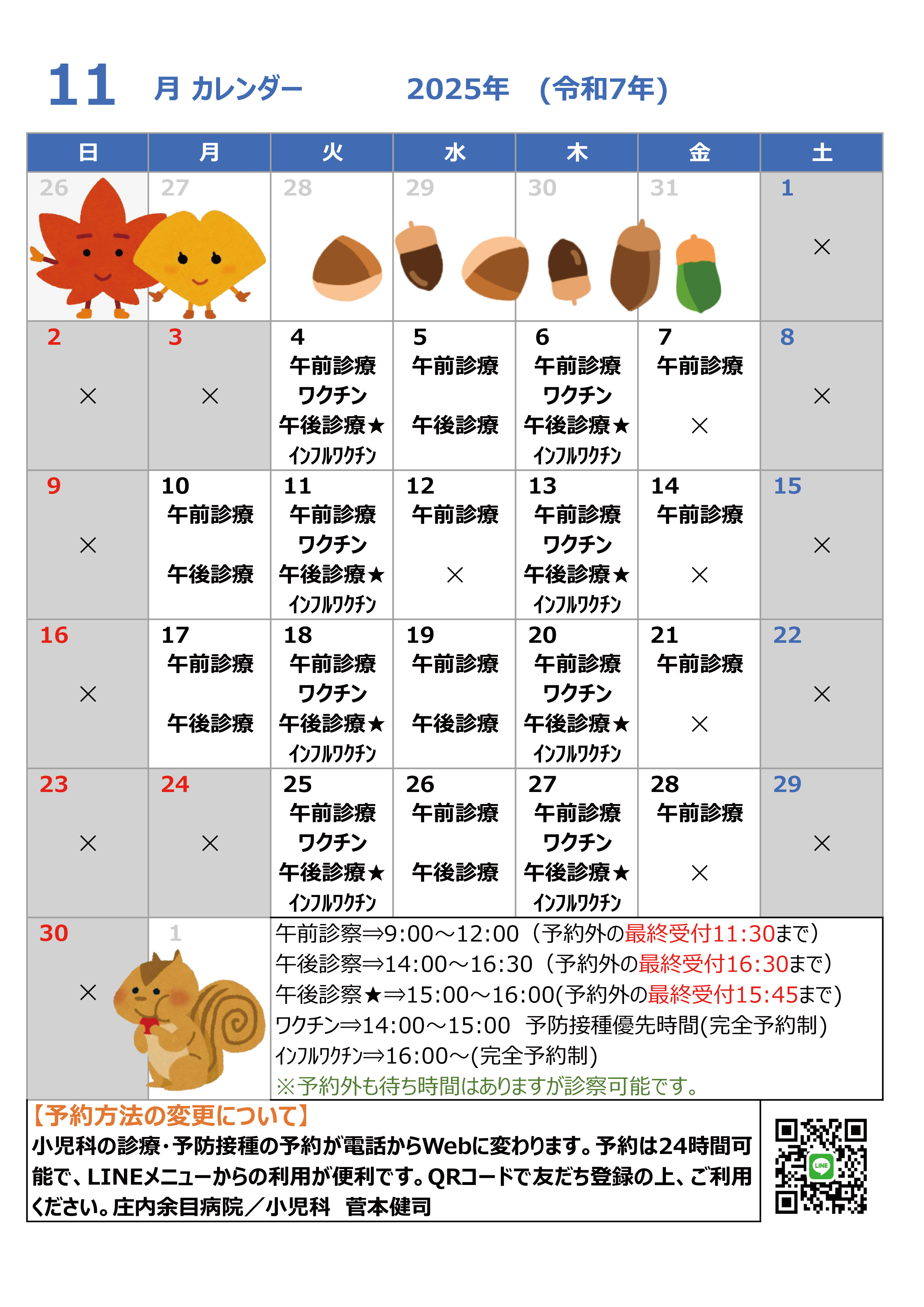 ※都合により、変更や休診となる場合がありますので、最新の診療予定は