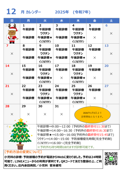 ※都合により、変更や休診となる場合がありますので、最新の診療予定は